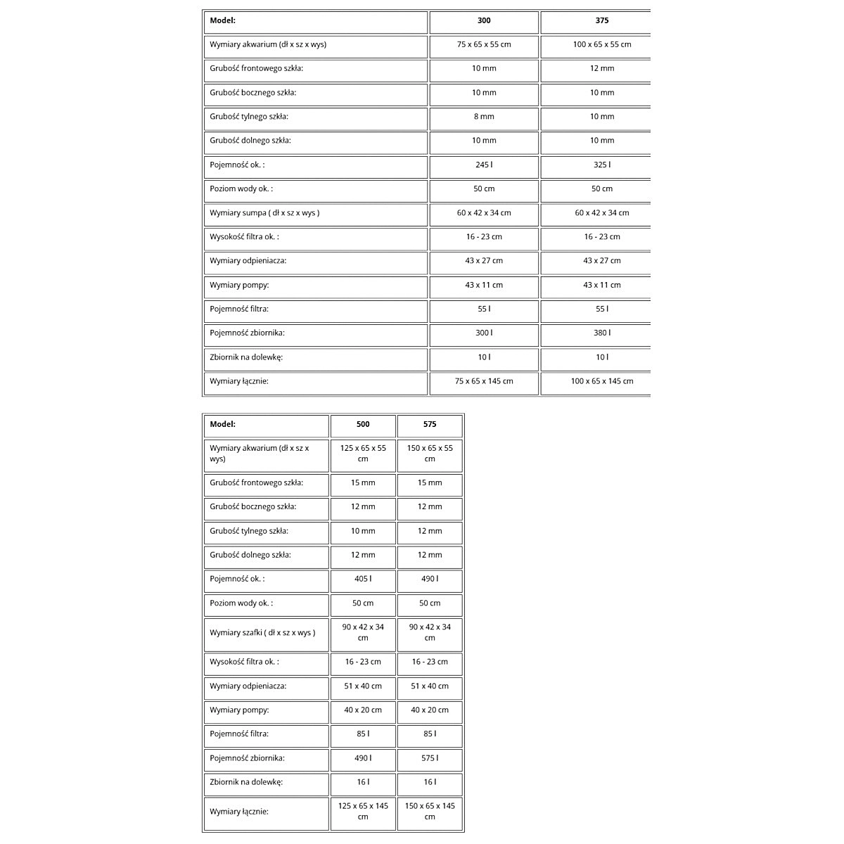 | Objętość całego systemu - akwarium + sump | 575 l |