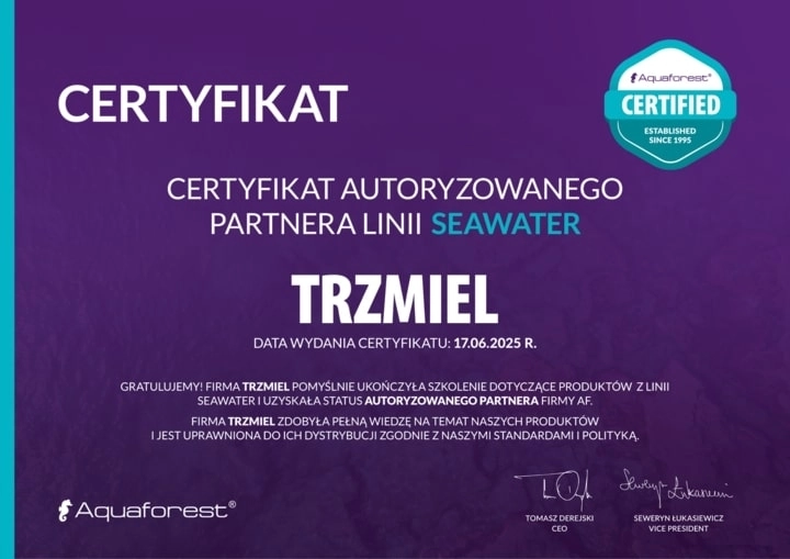 Aquaforest to znana w świecie, polska firma założona w 1995 roku. Prowadzi hodowlę koralowców i badania nad suplementami związanymi z akwarystyką morską. Produkty z linii morskiej Aquaforest są sprawdzonymi preparatami, wysokiej jakości o unikatowym składzie. Dają doskonałe rezultaty nawet w przypadku, trudnych w hodowli, koralowców SPS. W szerokiej gamie produktów z linii morskiej Aquaforest znajdują się również preparaty przeznaczone do suplementacji makroelementów, w akwariach morskich.