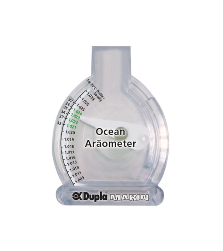 Aby prawidłowo przygotować solankę potrzebne jest urządzenie do pomiaru zasolenia. Również znajdziesz je w zestawie. Areometr określa stężenie (gęstość) soli w wodzie, które powinno mieścić się w granicach 1 022 - 1 024 gramów na mililitr wody (g/ml).