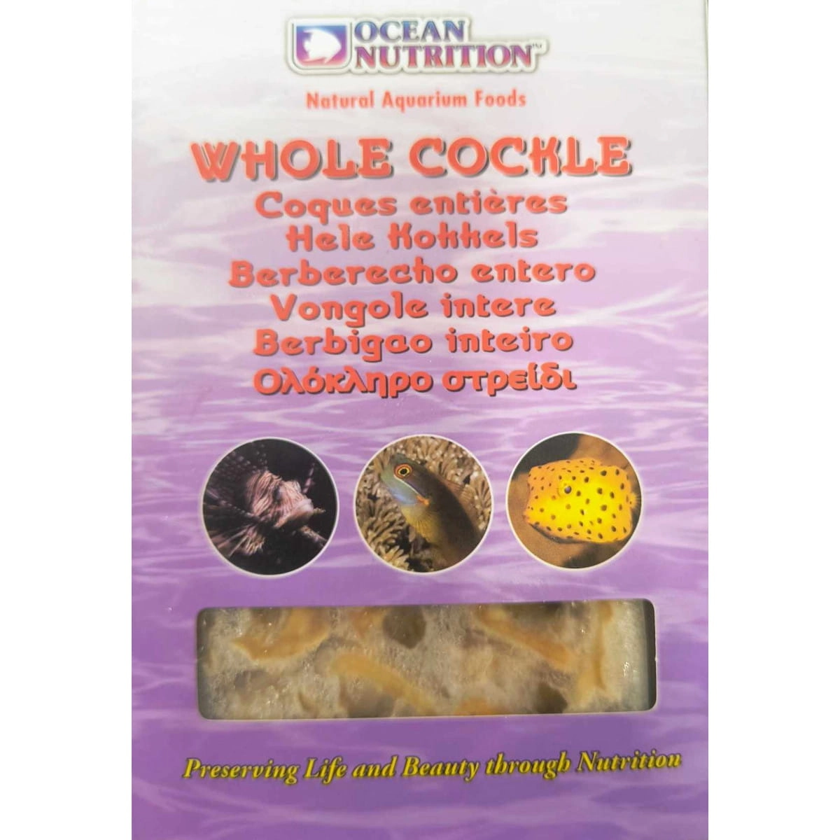 Ocean Nutrition Whole Cockles to mrożone małże sercówki. Nierozdrobnione, dobrze oczyszczone i zamrożone. Doskonały pokarm dla ryb akwariowych. Naturalna, zdrowa dieta. Wymaga przechowywania w zamrażarce.