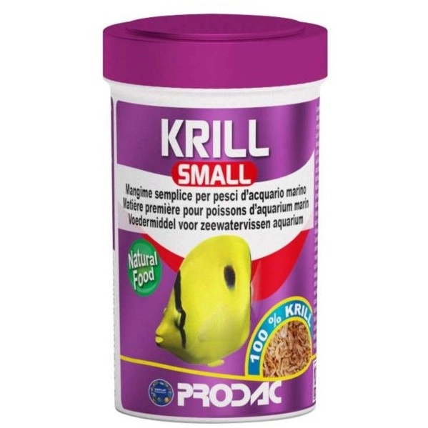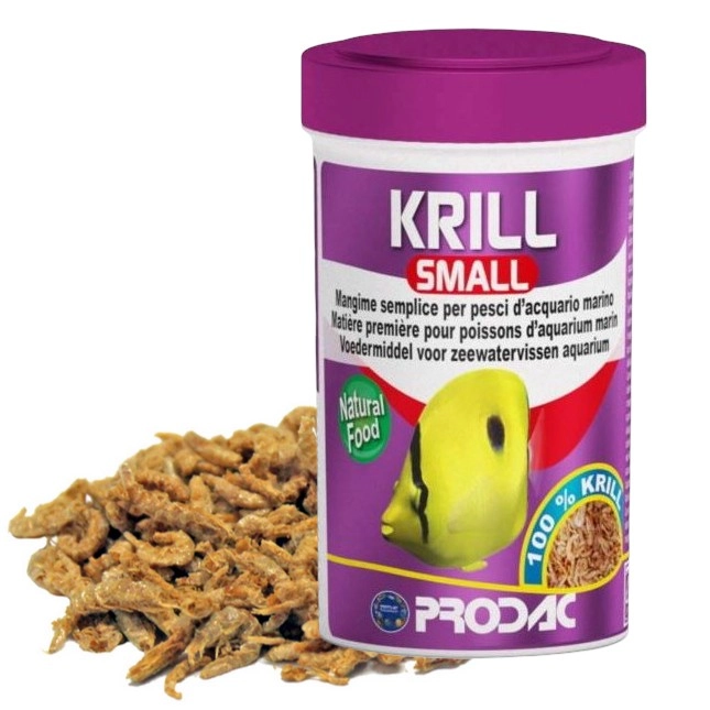 Prodac Krill Small to naturalny pokarm idealnie uzupełniająca codzienną dietę. Stanowi źródło wysokoenergetycznego białka zwierzęcego. Zwiera naturalnego kryla, który zachowuje wszystkie wartości odżywcze jednocześnie pozbawiony jest wywołujących choroby patogenów. Kryl jest chętnie pobierany przez wybredne gatunki, które niechętnie przyjmują przetworzone pokarmy.