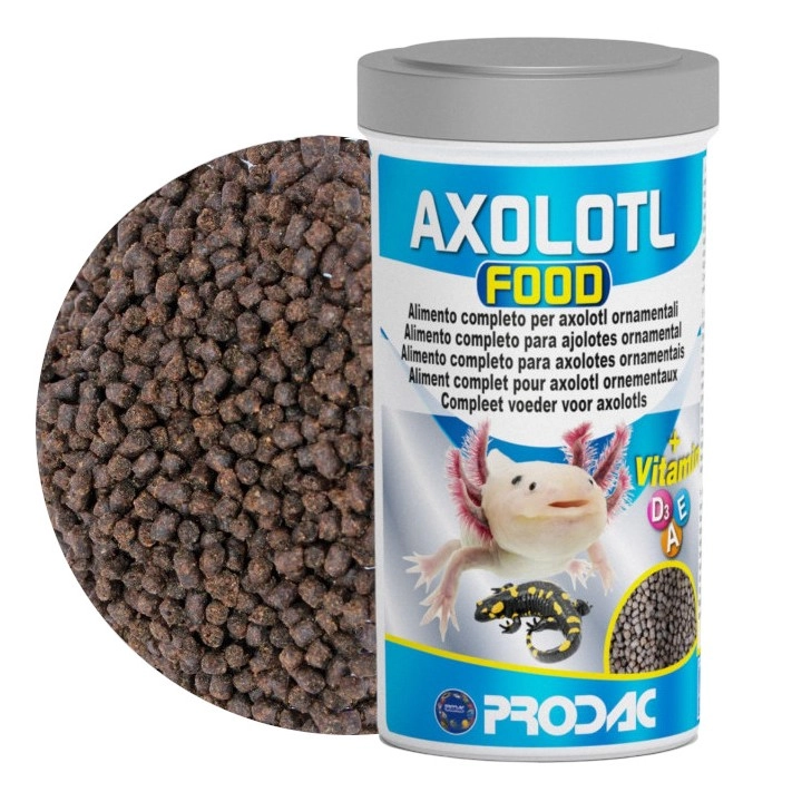 Prodac Axolotl Food to pokarm dla aksolotli i innych płazów wodnych. Ma postać tonącego pelletu przeznaczonego dla zwierząt pobierających pokarm z dna akwarium. Zaspokaja specyficzne potrzeby aksolotli meksykańskich, traszek Waltla, żab szponiastych i innych płazów wodnych, których dietę stanowią organizmy zwierzęce. Jest źródłem przyswajalnego białka, które zapewnia prawidłowy wzrost i rozwój. Dzięki dodatkowi witamin umożliwia wygodne suplementowanie tych ważnych składników pokarmowych. Dlatego sprawdzi się także jako uzupełnienie diety aksolotli karmionych żywym i mrożonym pokarmem. Zwiera witaminę C aktywującą układ odpornościowy do walki z infekcjami.