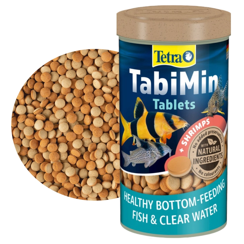 Tetra Tablets TabiMin to zbilansowany pokarm dla wszystkich ryb pobierających pokarm z dna. Wysoka zawartość krewetek sprzyja rozwojowi ryb. Szybko tonące tabletki pozwalają na precyzyjne umieszczenie pokarmu w wybranym miejscu. Dzięki stałej konsystencji nie brudzi wody.
