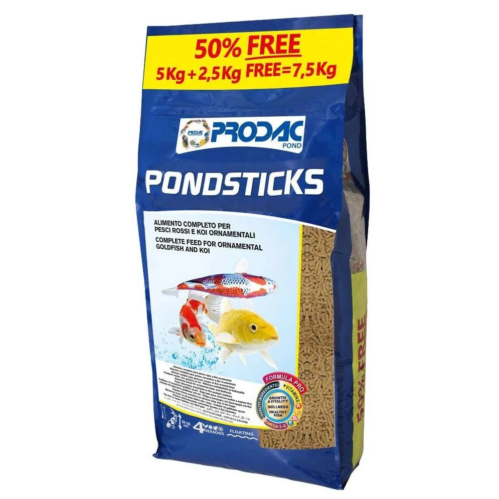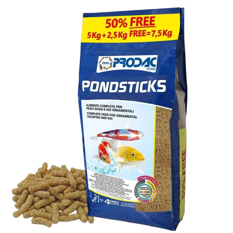 Prodac Pondsticks to pokarm, zaspokajający potrzeby żywieniowe ryb stawowych. Polecany dla wszystkich odmian karpi koi, złotych rybek i innych ozdobnych ryb karpiowatych hodowanych w oczkach wodnych. Pokarm ten ma wygodną formę pływających na powierzchni wody pałeczek i jest łatwo dostępny dla ryb karpiowatych.