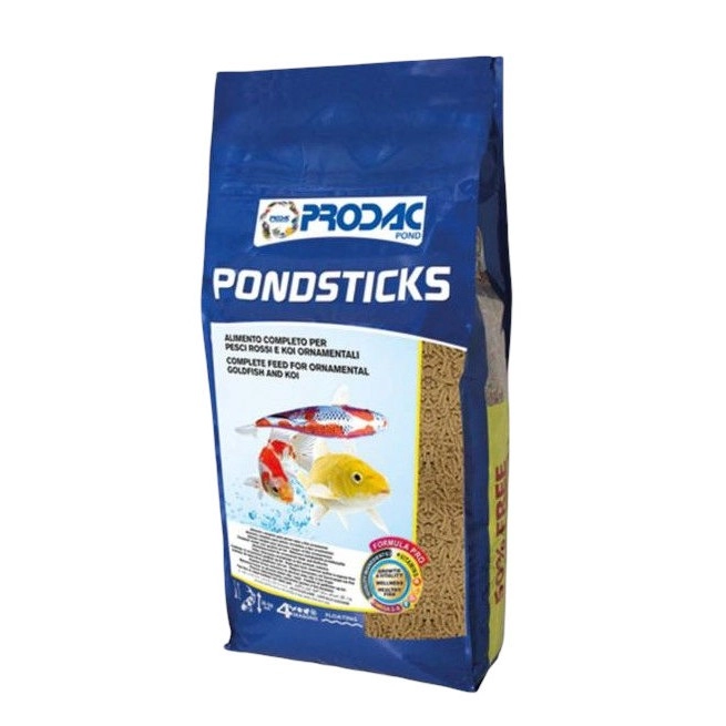 Prodac Pondsticks to pokarm, zaspokajający potrzeby żywieniowe ryb stawowych. Polecany dla wszystkich odmian karpi koi, złotych rybek i innych ozdobnych ryb karpiowatych hodowanych w oczkach wodnych. Pokarm ten ma wygodną formę pływających na powierzchni wody pałeczek i jest łatwo dostępny dla ryb karpiowatych.
