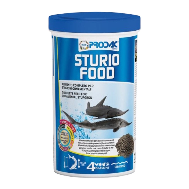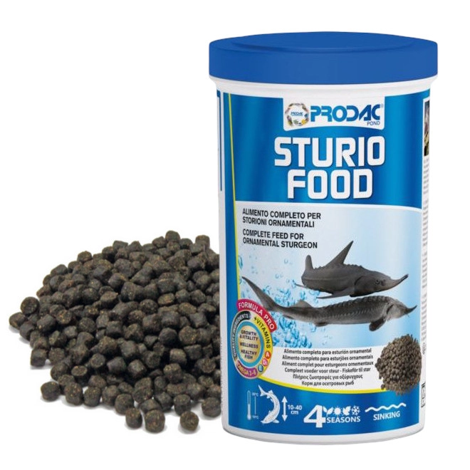 Prodac Sturio Food to wieloskładnikowy pokarm do oczek wodnych. Przeznaczony dla ryb żerujących przy dnie. Polecany dla jesiotrów. Ma formę tonącego granulatu 3-4 mm. Zapewnia prawidłowy wzrost i rozwój. Dostarcza witamin, kawasów omega 3 i 6.