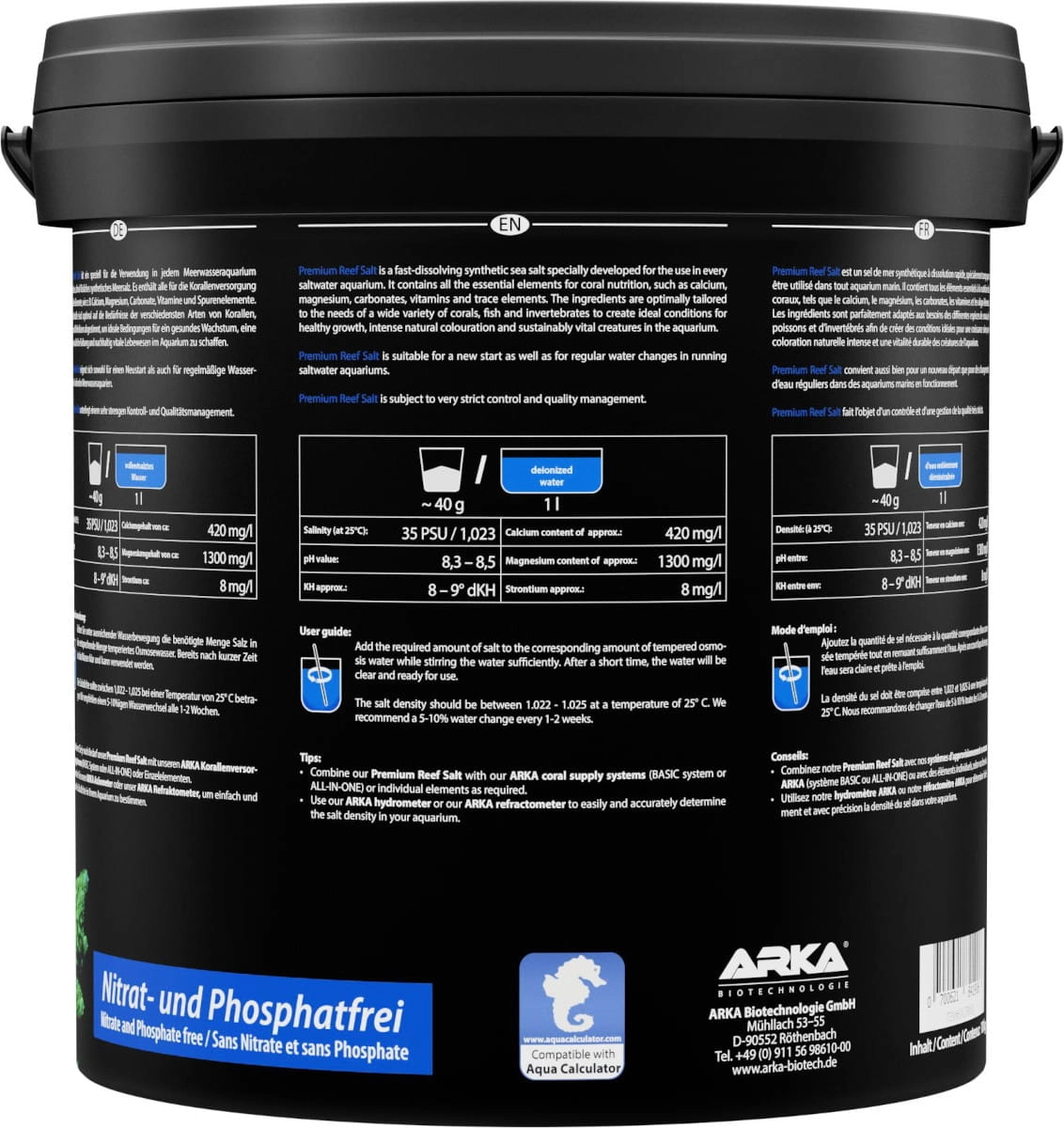 Specjalna formuła soli zapobiega wytrącaniu się wapnia. Natomiast zbilansowany skład wspomaga szybki wzrost alg wapiennych, tak lubianych przez akwarystów. Produkt nadaje się do wszystkich typów zbiorników morskich, od Fish Only, aż po rafowe akwaria z przewagą drobnopolipowych koralowców twardych SPS.