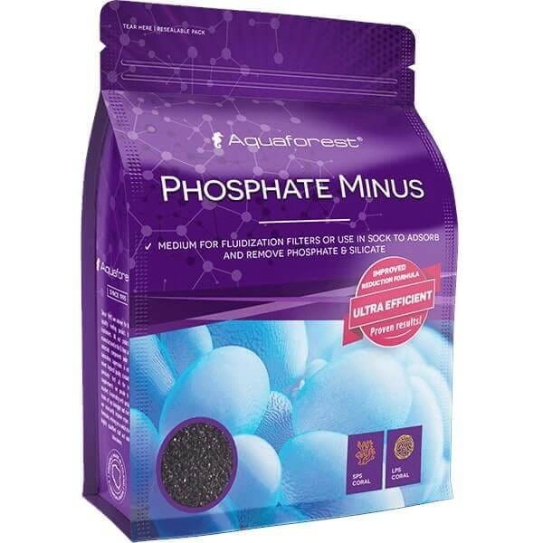 Sypkie złoże filtracyjne do filtrów przepływowych, które dzięki swojej budowie chemicznej absorbuje niepożądane w akwarium morskim fosforany i krzemiany. Fosforany są jednym z produktów przemiany materii zwierząt wodnych. Ich stężenie rośnie zwłaszcza w zbiornikach z dużą obsadą ryb, a także przypadku nadmiernego lub niewłaściwego karmienia. Bardzo wrażliwe na wyższe stężenia fosforanów są koralowce, które tolerują wartości do 0,04 ppm. Aquaforest Phosphate Minus dzięki swoim właściwościom absorpcyjnym skutecznie zmniejsza stężenie szkodliwych fosforanów w Twoim akwarium morskim. Niski poziom fosforanów zapewnia piękne wybarwienie koralowców i zmniejsza ryzyko występowania glonów.