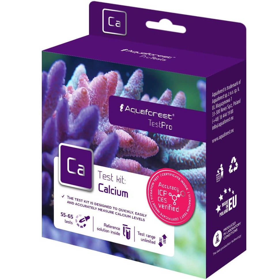 Aquaforest Calcium Test Kit to kompletny zestaw do określenia zawartości wapnia Ca. Przeznaczony do akwarium morskiego. Opakowanie zawiera wszystkie elementy potrzebne do wykonania testu. Umożliwia szybką kontrolę stężenia wapnia w słonej wodzie. Wystarczy na wykonanie 55-65 oznaczeń.