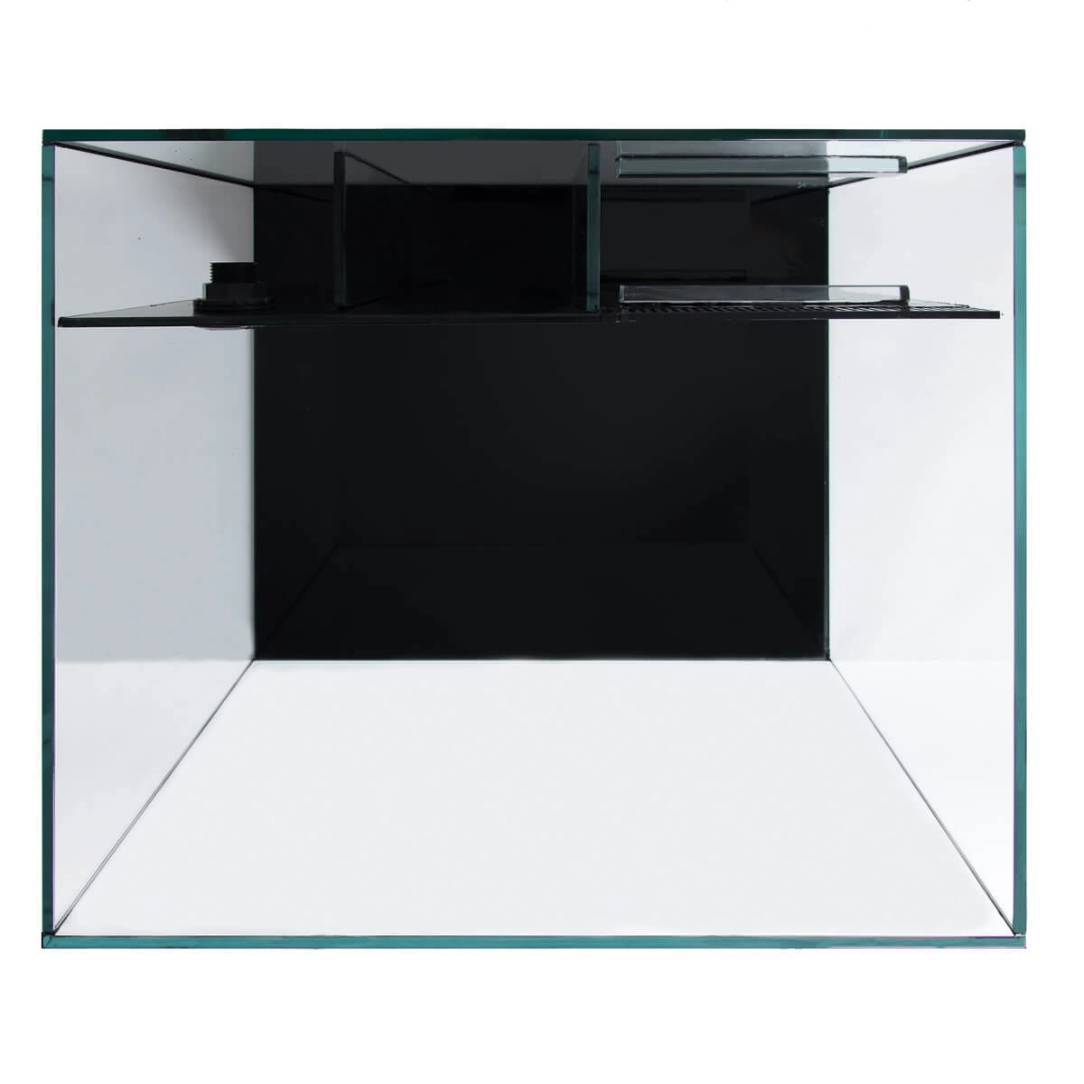 Część ekspozycyjna została wykonana ze szkła Optiwhite o grubości 8 mm. Jako tło służy czarny lacobel, który jednocześnie stanowi ściankę panelu filtracyjnego. Dno także wykonano z czarnego szkła. Elegancki wygląd akwarium i doskonałe odwzorowanie kolorów, uzyskano dzięki wykorzystaniu ultra przezroczystego szkła Optiwhite. Dopasowane z niezwykłą starannością i precyzyjnie polerowane szkło daje wrażenie przebywania wprost na rafie. Optiwhite umożliwia również wykonanie świetnych zdjęć i filmów podwodnego świata. Akwarium z wytrzymałego szkła, nie posiada wzmocnień i pokrywy dzięki czemu zyskuje niezwykle elegancki wygląd. Czarny silikon nie odbarwia się pod wpływem glonów i zapewnia estetyczny wygląd przez długi czas.