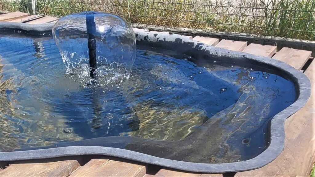 W takich małych pojemnikach typowy filtr do wody w oczku nie jest obowiązkowy. Natomiast świetnie sprawdzi się mała fontanna. Urządzenia te mają już przeważnie wbudowane małe prefiltry zabezpieczające wirnik przed uszkodzeniem. Wymuszony ruch wody zapobiegnie zbieraniu się kurzu, pyłków i innych zanieczyszczeń na powierzchni, które tworzą nieestetyczną, opalizującą powłokę i mogą powodować brzydki zapach. Zalecamy zresztą wymieniać w takim oczku wodę całkowicie co kilka tygodni. Dzięki temu utrzymasz czystość na należytym poziomie, a niewielka pojemność nie zrujnuje Twojego domowego budżetu na uzupełnianie wody. A starą wodę możesz z powodzeniem wykorzystać do podlania roślin w ogrodzie.